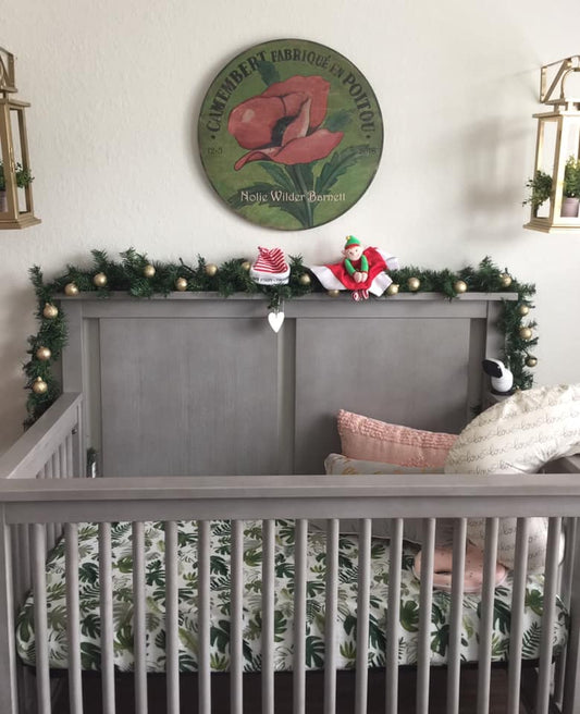 Pink Poppy Stem on Green Wood Lazy Susan - 15" or 23"