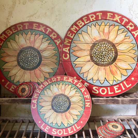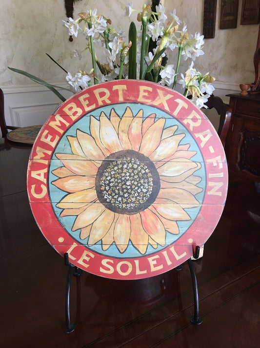Yellow Sunflower on Sage Wood Lazy Susan - 15" or 23"