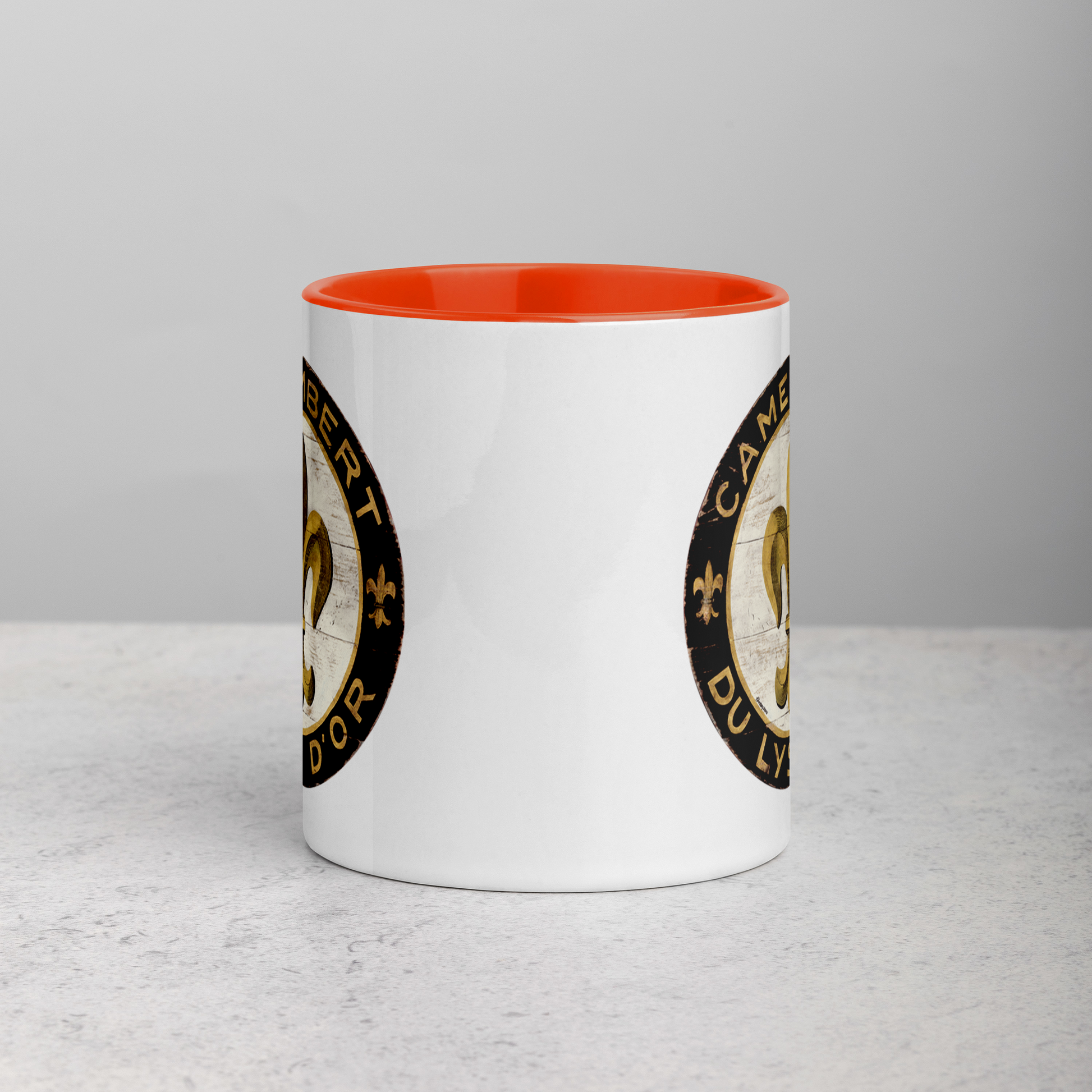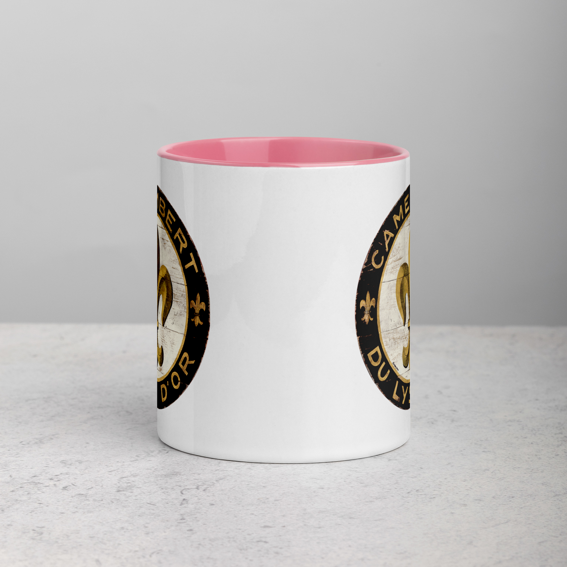 Black and Gold Fleur Mug with Color Inside. Add a splash of color to your morning coffee or tea ritual with our black and gold fleur mug! These ceramic mugs not only have a beautiful design on them, but also a colorful rim, handle, and inside, so the black and gold fleur mug is bound to spice up your mug rack. We hand-paint all of our original designs and then print them on various products.