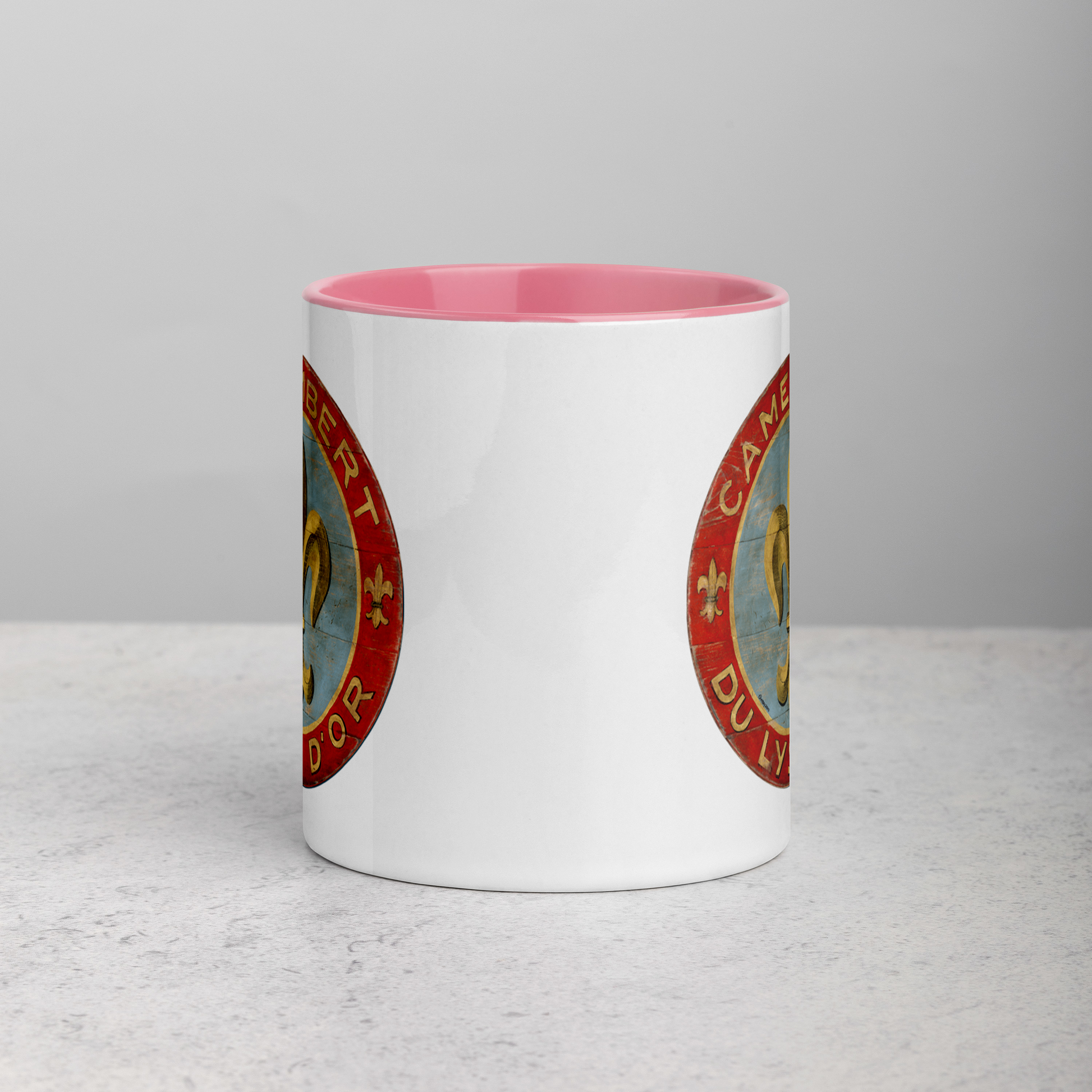 Blue and Gold Fleur Mug with Color Inside. Add a splash of color to your morning coffee or tea ritual with our blue and gold fleur mug with a touch of red on the design! These blue and gold fleur ceramic mugs not only have a beautiful design on them, but also a colorful rim, handle, and inside, so the mug is bound to spice up your mug rack and make a great gift. This would be a great gift to add to the Blue and Gold Fleur lazy Susan. We hand-paint all of our original designs and then print them on various products.