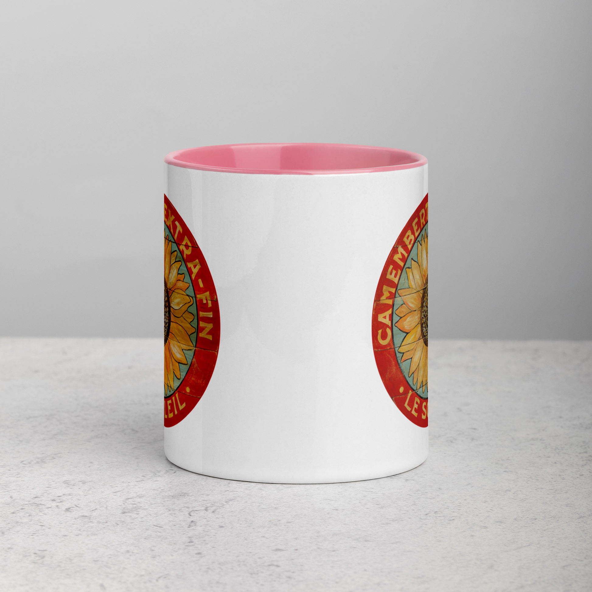 Yellow Sunflower on Blue Mug with Color Inside