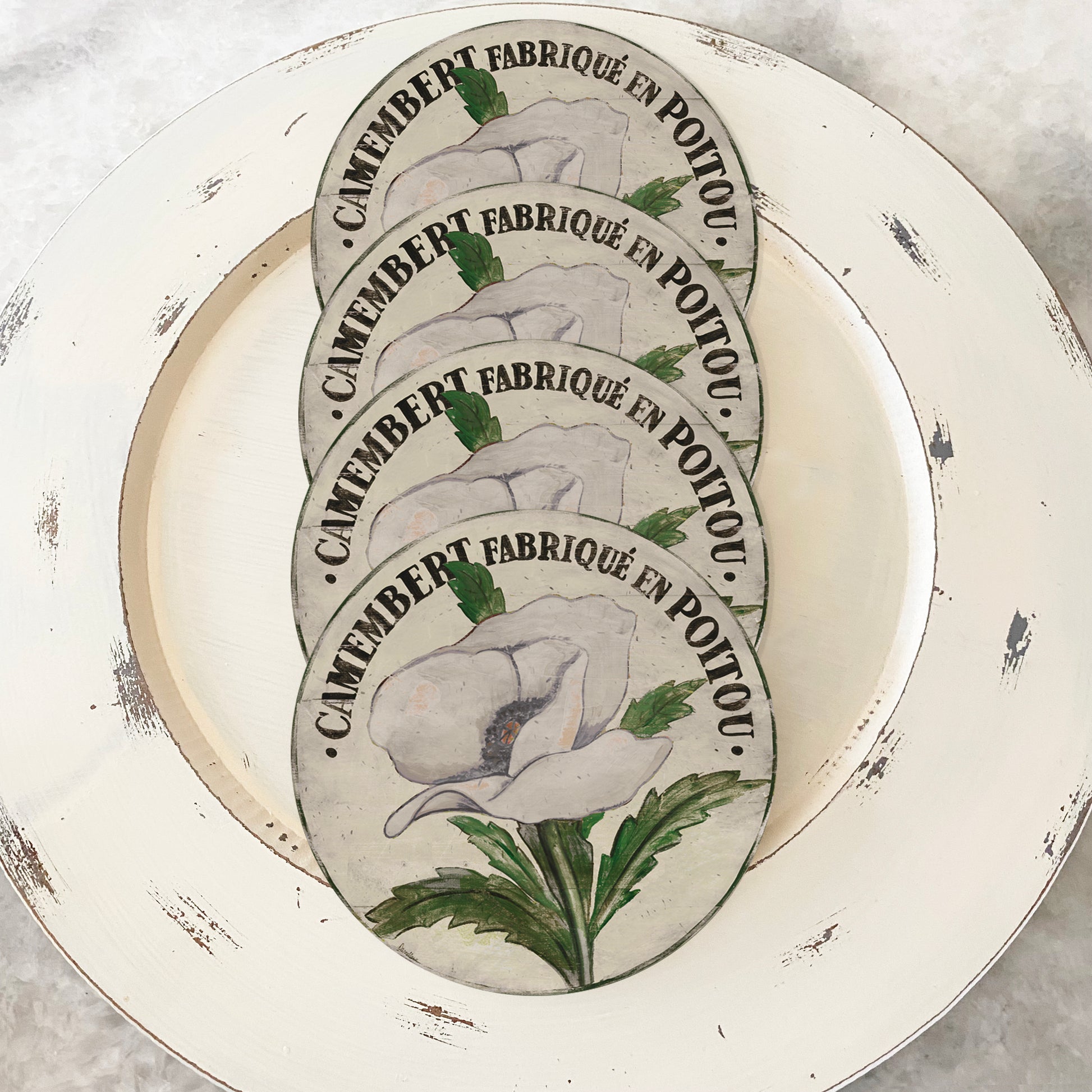White Poppy Stem coasters on wood. (set of 4). What's not to love about these beautiful white poppy stem coasters? The white poppy stem coasters are so happy and go with any decor. They are also the perfect gift.
